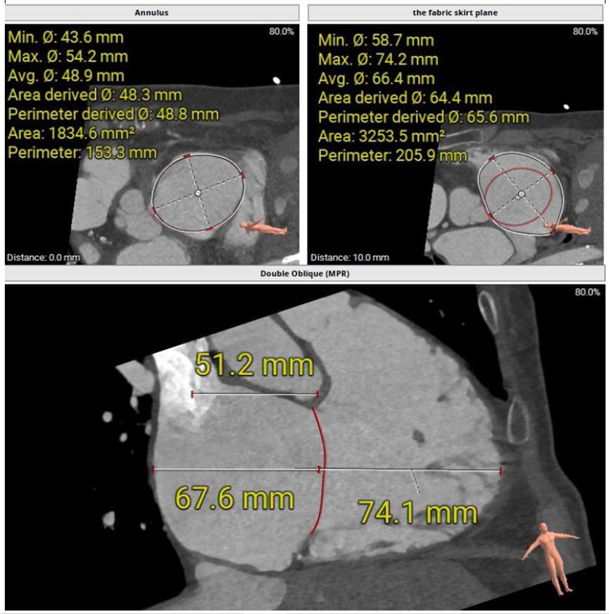 經過術前詳細評估,林逸賢教授團隊認為患者三尖瓣解剖結構不適用于接受三尖瓣修復器械治療(難以夾持瓣葉),最終決定使用健世科技LuX-Valve Plus經頸靜脈三尖瓣置換系統進行三尖瓣原位置換治療。