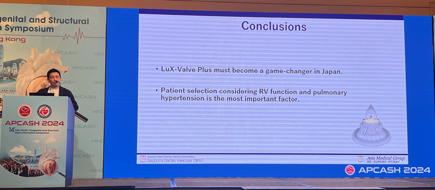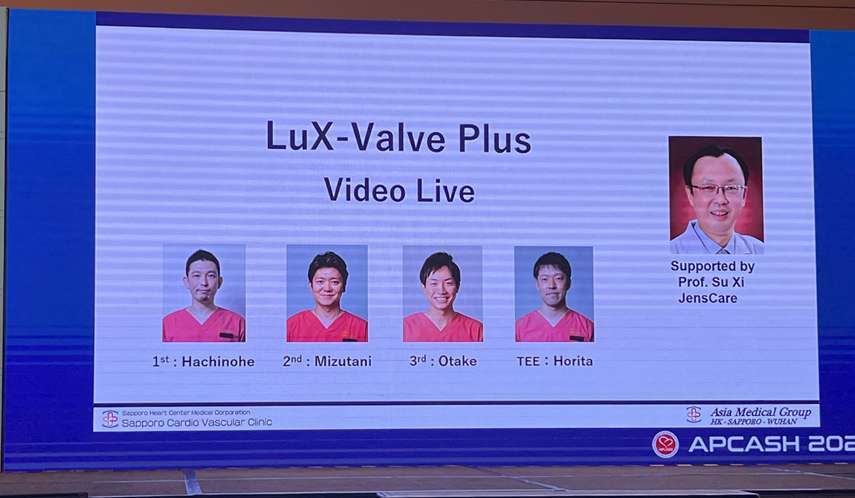 日本札幌心血管醫院的Daisuke Hachinohe教授分享了一例同武漢亞洲心臟病醫院(Wuhan Asian Heart Hospital, Whan, China)的蘇晞(Xi SU)院長聯手進行的 LuX-Valve Plus 病例,詳細展示了經導管三尖瓣置換的操作步驟和技術要點。這也是 LuX-Valve Plus 在日本的首例植入。Hachinohe教授稱贊 LuX-Valve Plus 將成為日本三尖瓣反流治療的game changer。